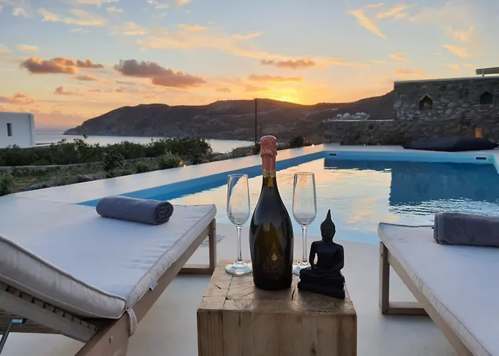 Die 2-Zimmer- Villa Francis Panormos verfügt über eine Terrasse mit Blick aufs Meer und ist 15 Autominuten vom Flughafen Mykonos entfernt gelegen.